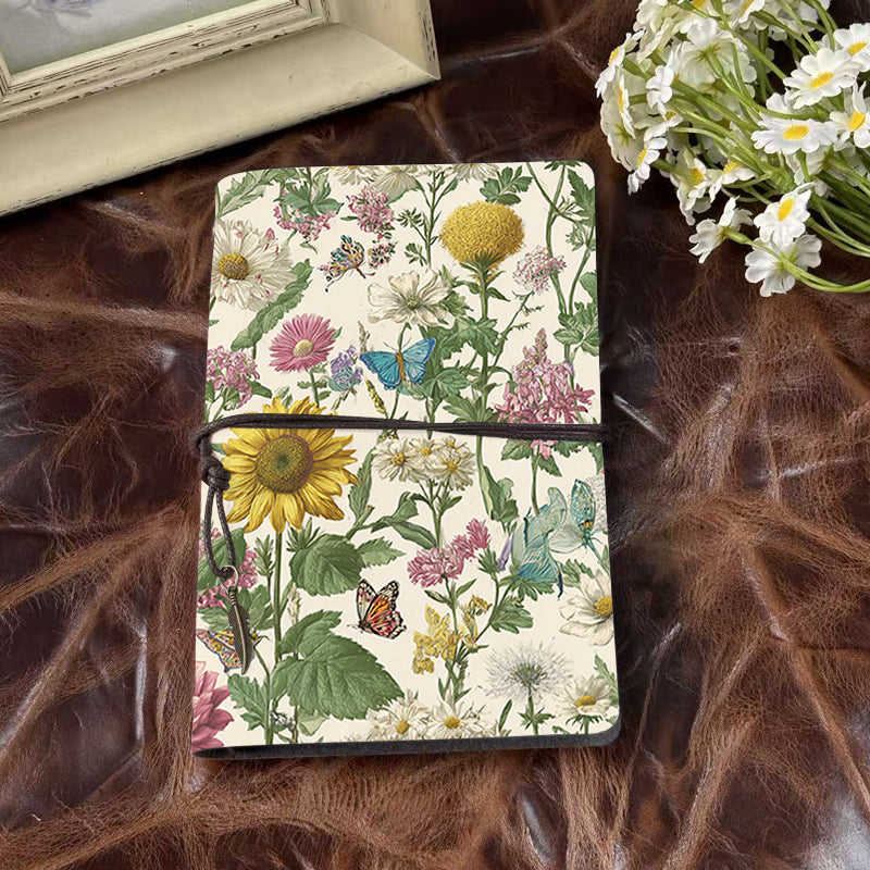 A6 Handmade Notebook, Vintage - Inspired, 160 Pages, Metal Loose - leaf, Tether Closure w/ Metal Pendant, Ideal for Office with Flowers, bu