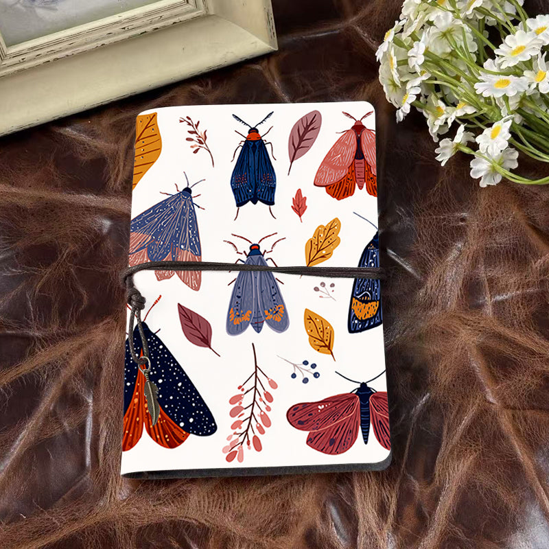 Handmade A6 Notebook for Office, Tether Closure with Metal Pendant, Metal Hinge Allows Paper Replacement, Perfect for Records with Moths and